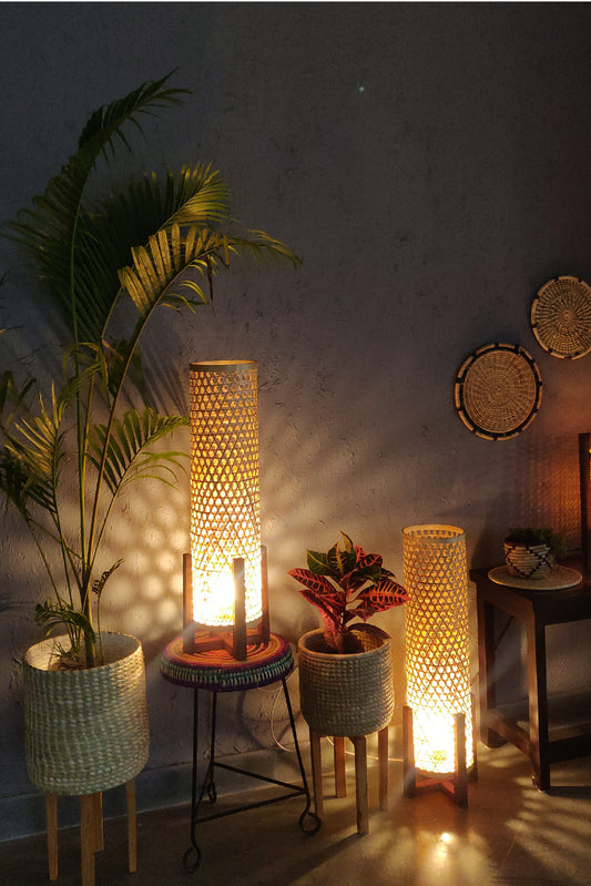 Hand Made BAMBOO SLEEK LAMP -Star Weave Pattern