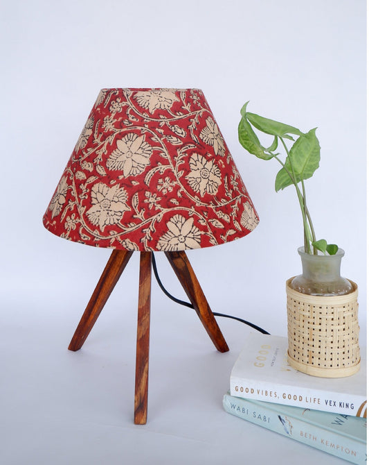 TRIPOD LAMP FLORAL PRINT CRIMSON RED